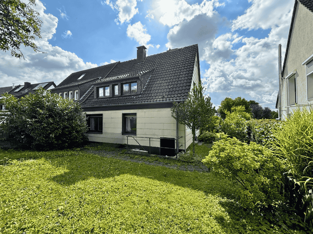 Diese ca. im Jahr 1958 errichtete Doppelhaushälfte bietet auf rund 117 m² Wohnfläche viel Platz für individuelle Gestaltungsmöglichkeiten. Aufgeteilt in insgesamt sieben Zimmer, eine Küche und zwei Bäder, verteilt sich die Wohnfläche auf ca. 69 m² im Erdgeschoss und ca. 49 m² im Obergeschoss. Der nicht ausgebaute Spitzboden eröffnet zusätzliches Ausbaupotenzial und macht das Haus besonders interessant für Familien mit Zukunftsplänen.
