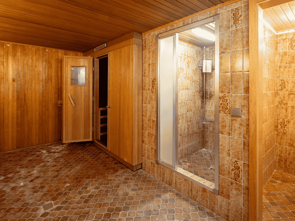 Kamin sowie einen Wellnessbereich mit Sauna, Dusche, WC und einem